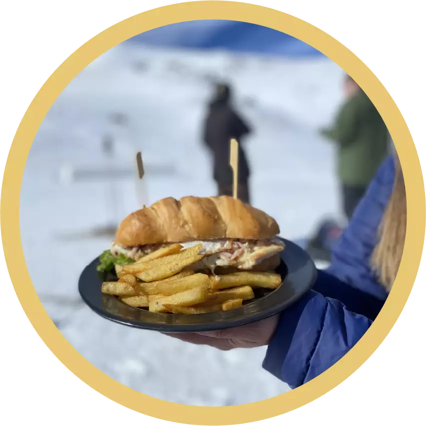 Podés hacer una pausa para relajarte y descansar de tus actividades de esquí en La Hoya. Disfrutar de una deliciosa comida casera con sabor patagónico preparadas con ingredientes frescos y de alta calidad. También contamos con una selección de bebidas calientes y frías, perfectas para reponer energías y disfrutar de un momento de tranquilidad en un ambiente acogedor y confortable.